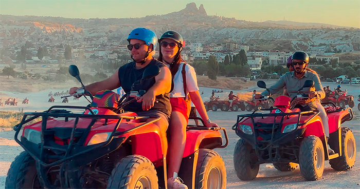 Kapadokya atv turu, Kapadokya arazilerinin içinde en kolay aksiyon macera dolu bir şekilde gezmek isteyenlerin ilk tercihi olarak karşımıza çıkmaktadır. Standart araçların giremediği vadilerde ilerleyen, kontrollü bir off-road safari deneyimi ile hem aksiyon dolu zaman geçirerek hem de bölgenin en uç noktalarına ulaşım sağlamış olacaksınız. Atv kiralama işi bireysel olarak değil, bir rehber eşliğinde olmaktadır. İster özel atv turu yapın isterseniz grup halinde bir tur yapın, önceden belirlenmiş rotalar harici atv ile bile gezinti yapılması güvenli değildir. Önceden belirlenen rotalar test edilmiş deneyimi yüksek manzarası güzel yerlerden seçilmektedir.